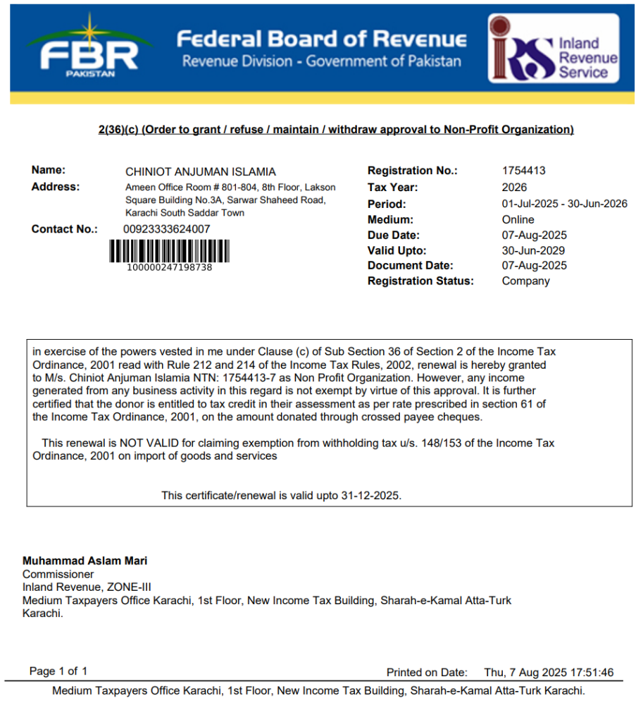FBR Tax Exemption Certificate